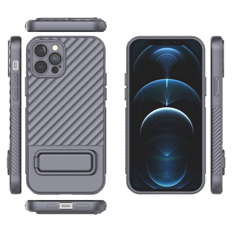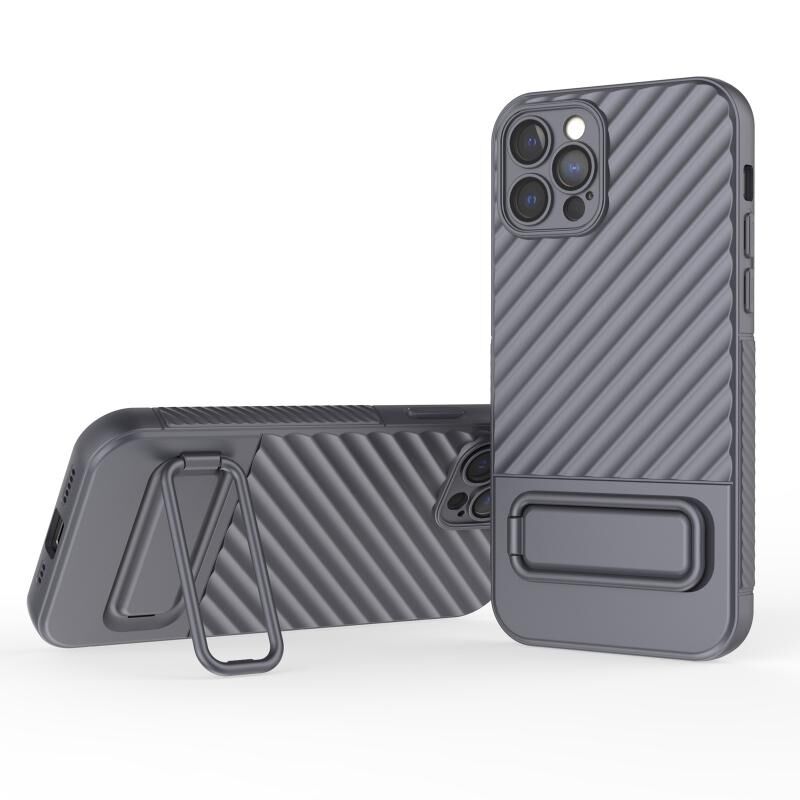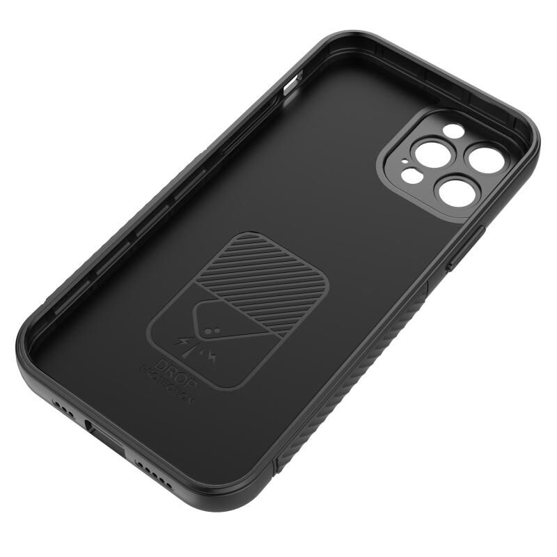 Θήκη τηλεφώνου TPU με κυματιστή υφή για iPhone 12 Pro με προστατευτική μεμβράνη φακού (Μαύρο)