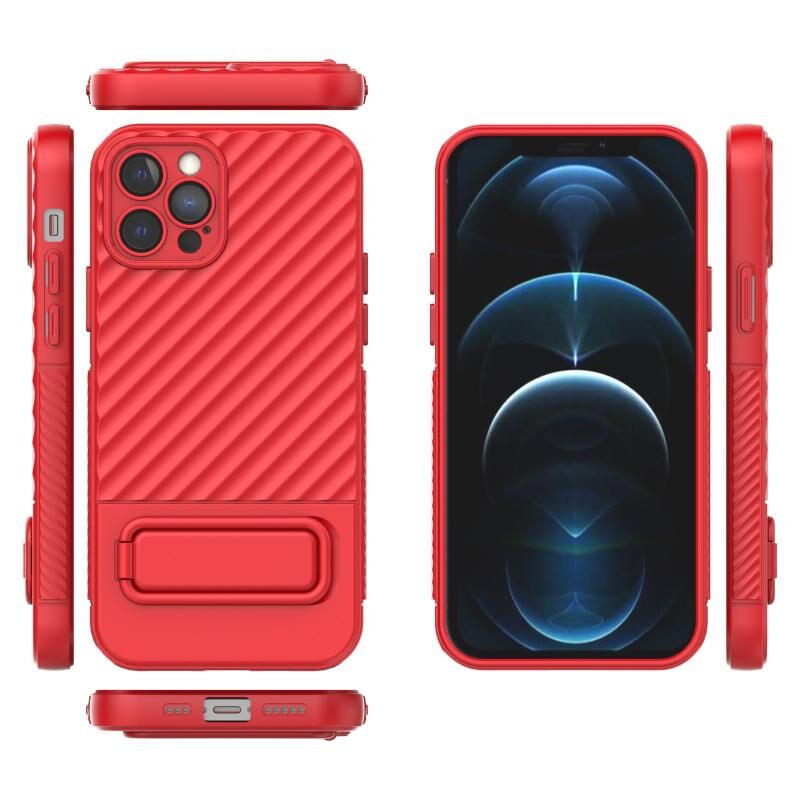 Θήκη τηλεφώνου TPU με κυματιστή υφή για iPhone 12 Pro με προστατευτική μεμβράνη φακού (Μαύρο)