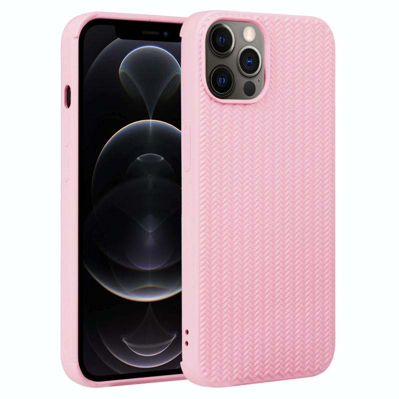 Θήκη σιλικόνης για iPhone 12 Pro με υφή ύφανσης (ρόζ)