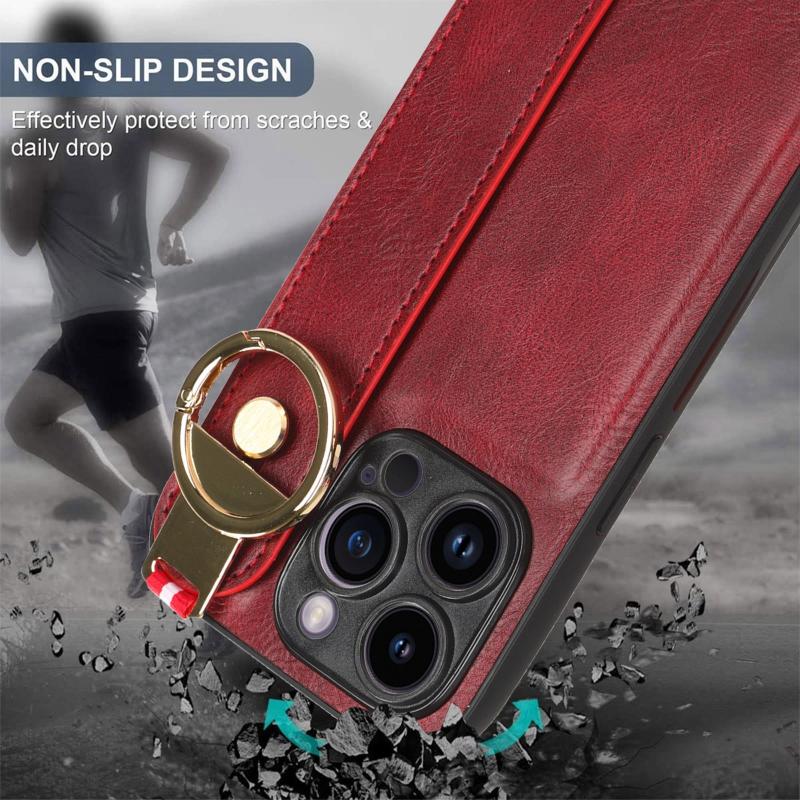 For iPhone 12 Pro Wristband Leather Back Phone Case(Red)