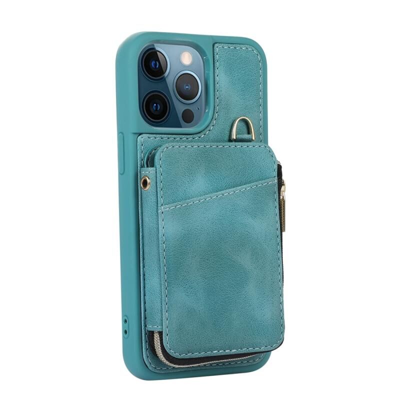 For iPhone 12 Pro Zipper Card Bag Back Cover Phone Case(Turquoise)