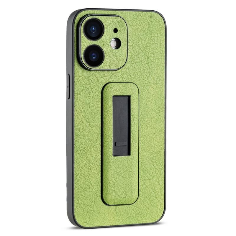 For iPhone 12 PU Leather Push-pull Bracket Shockproof Phone Case(Green)