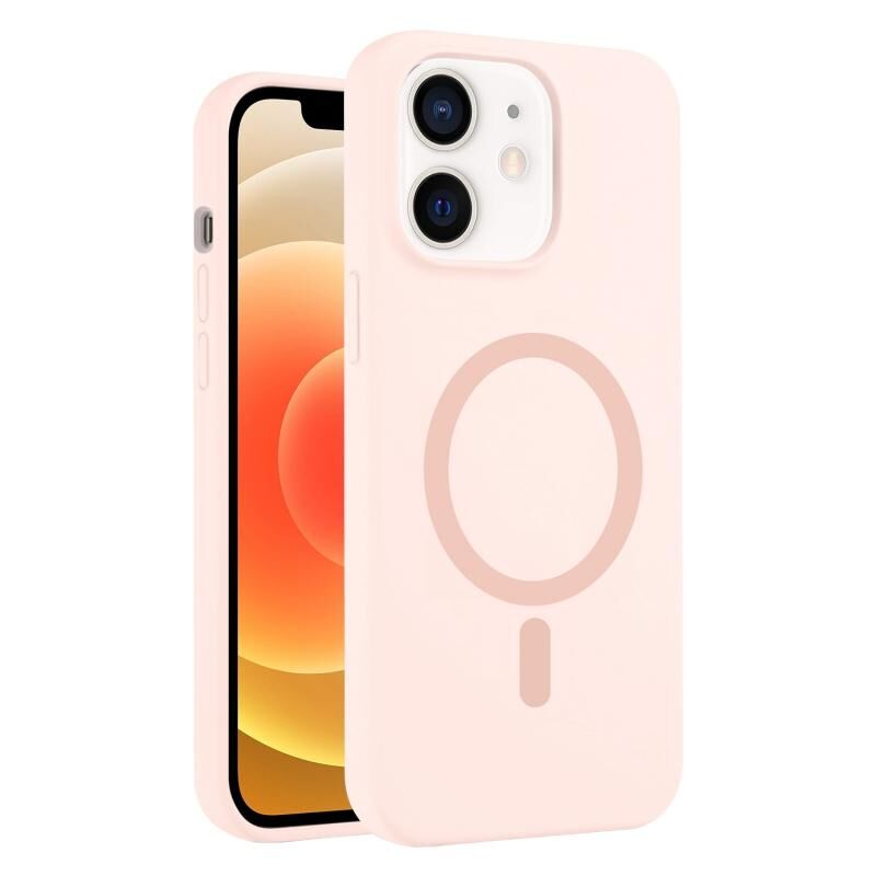 For iPhone 12 Pure Color Liquid Silicone MagSafe Phone Case(Pink)
