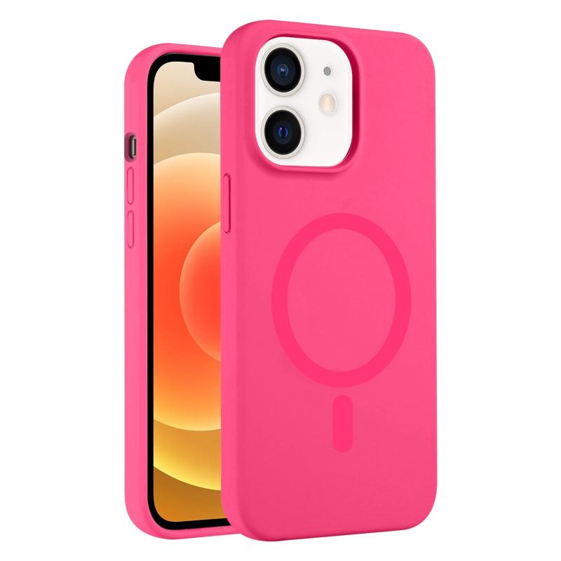 For iPhone 12 Pure Color Liquid Silicone MagSafe Phone Case(Rose Red)