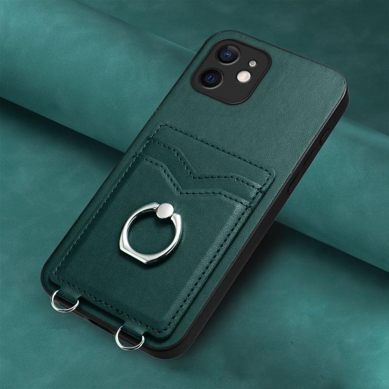 For iPhone 12 R20 Ring Card Holder Phone Case(Green)