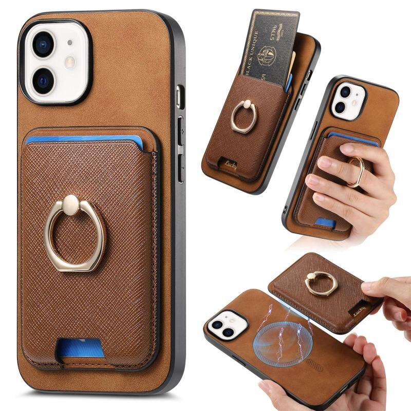 For iPhone 12 Retro Cross Leather Card Bag MagSafe Phone Case(Brown)