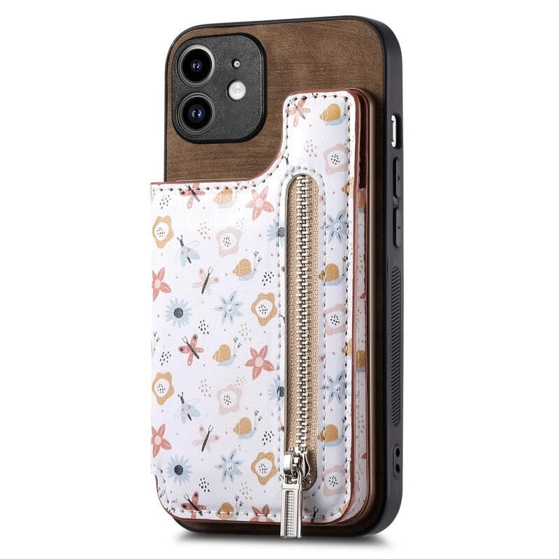 Θήκη κινητού τηλεφώνου για iPhone 12 με σχέδιο vintage, φερμουάρ και θήκη πορτοφολιού (Ροζ)