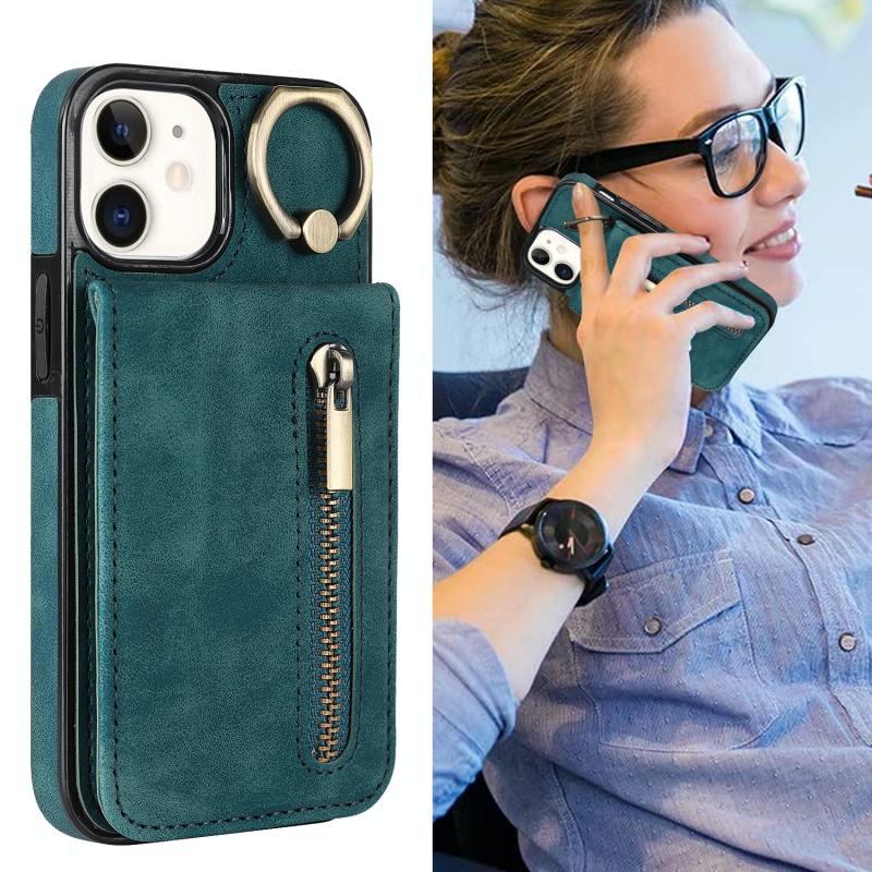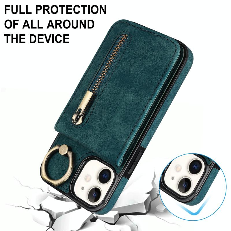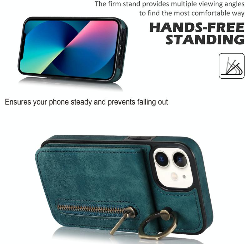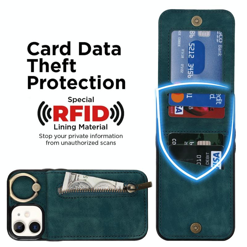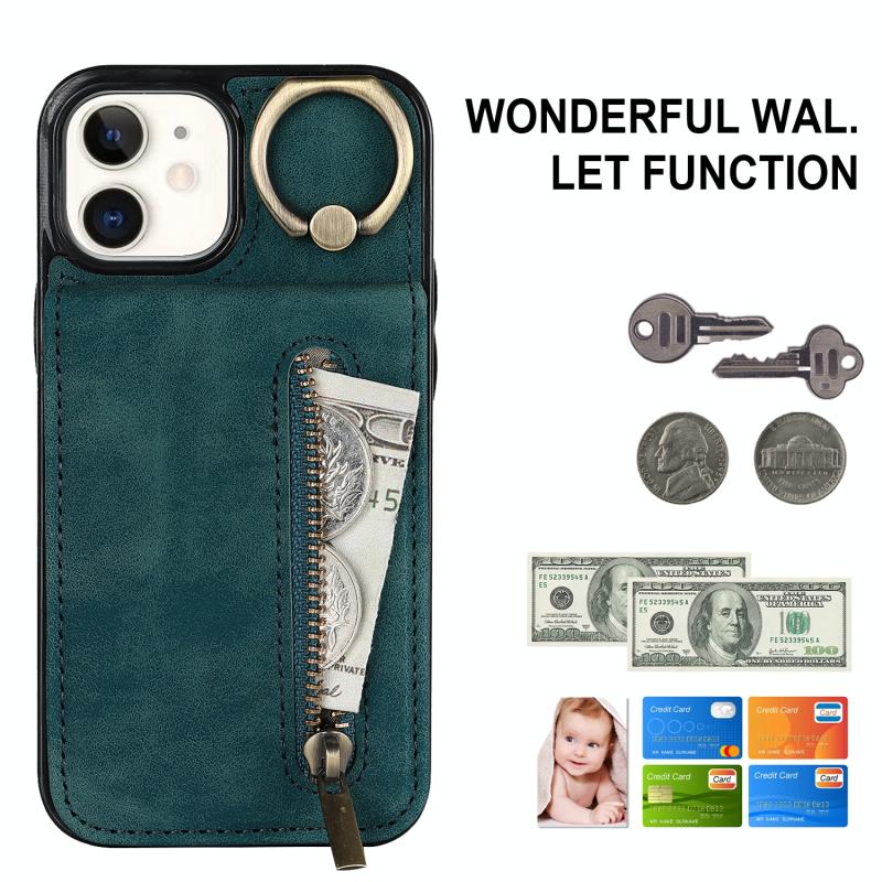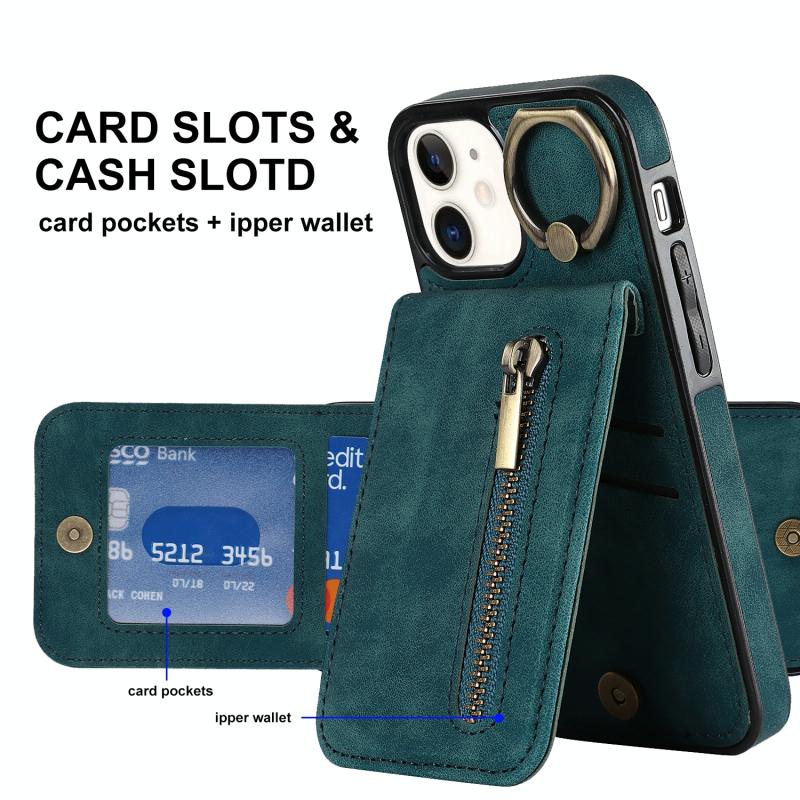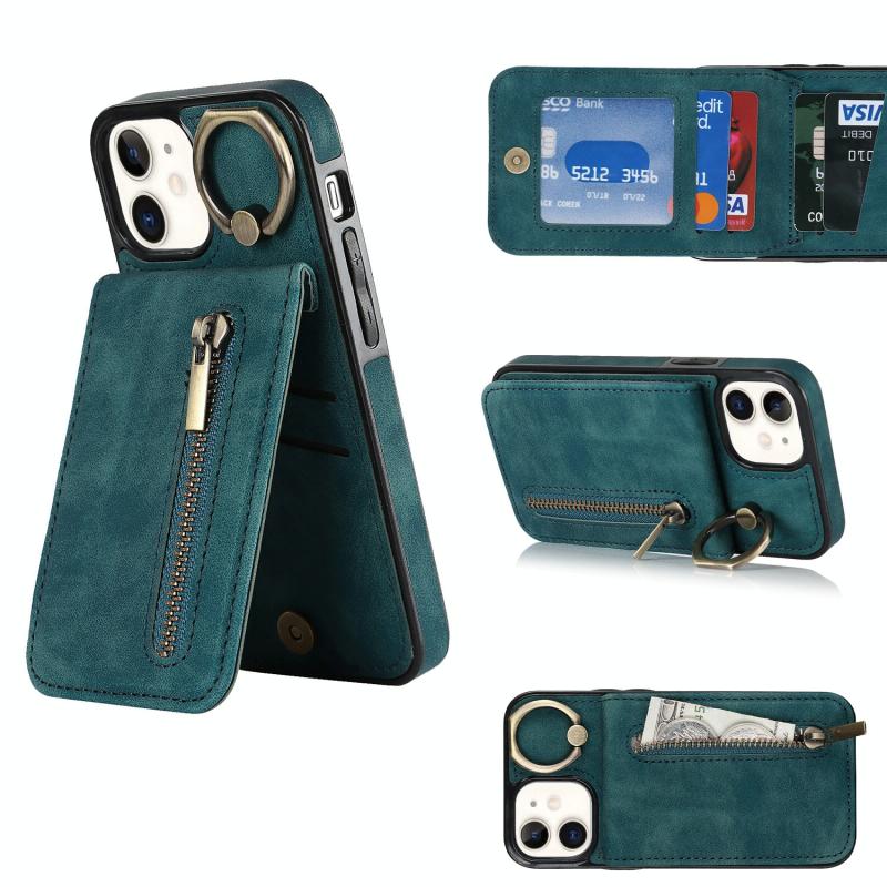 For iPhone 12 Retro Ring and Zipper RFID Card Slot Phone Case(Blue)