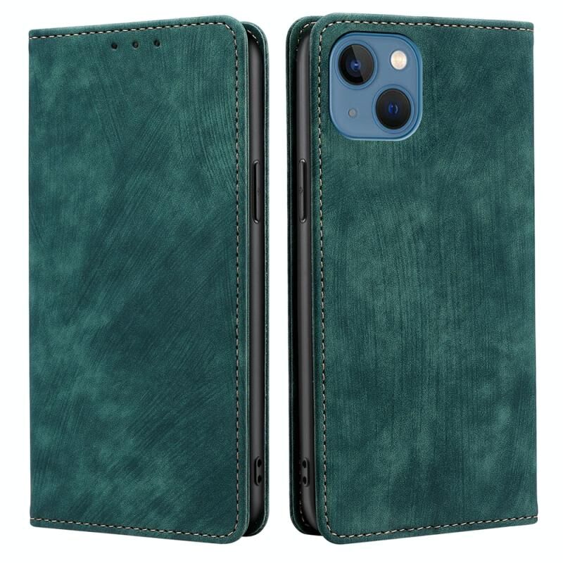 For iPhone 12 RFID Anti-theft Brush Magnetic Leather Phone Case(Green)