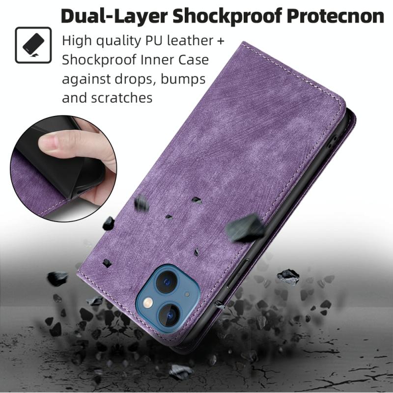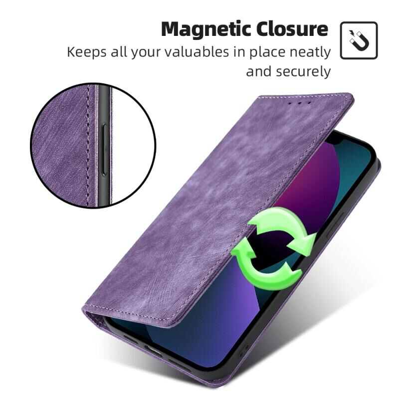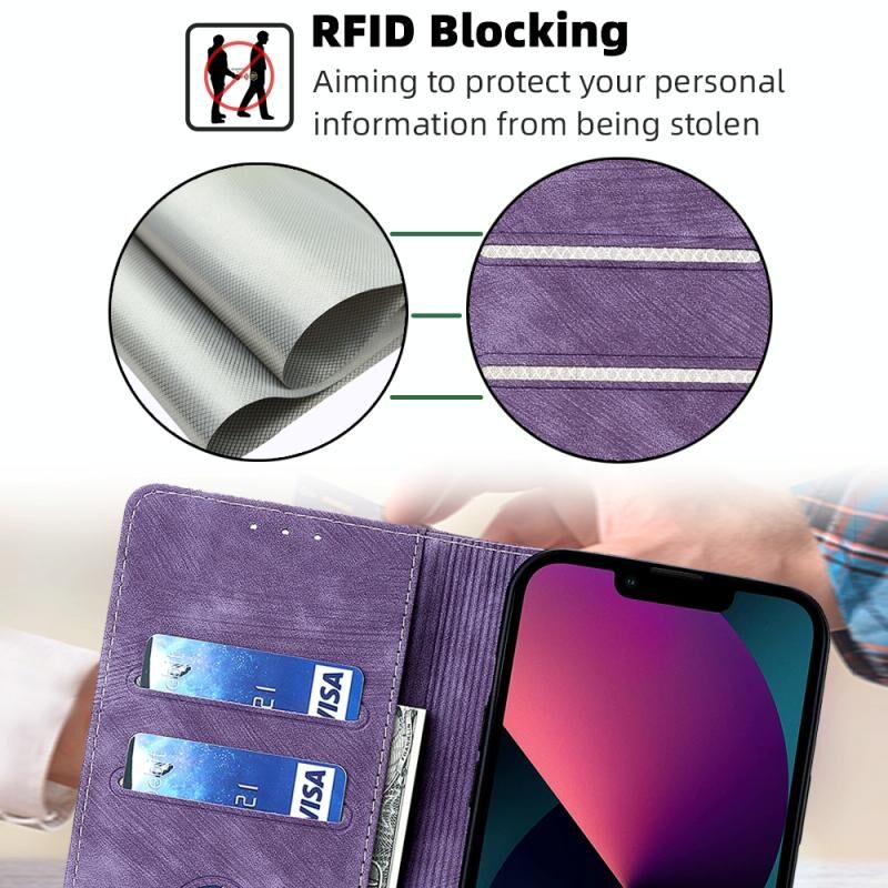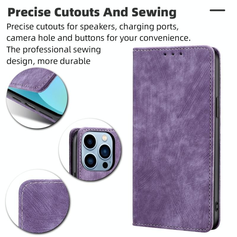 For iPhone 12 RFID Anti-theft Brush Magnetic Leather Phone Case(Purple)