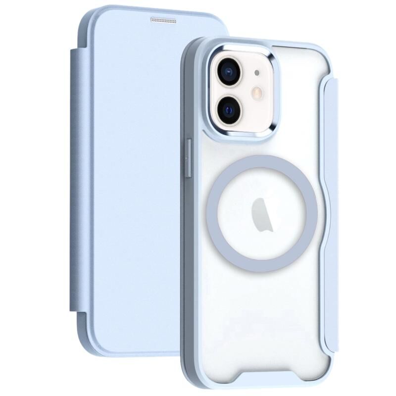 Θήκη τηλεφώνου από δέρμα με μαγνητική σύνδεση MagSafe, απορροφητική, αναδιπλούμενη και με μπλοκάρισμα RFID για iPhone 12 (Μπλε)