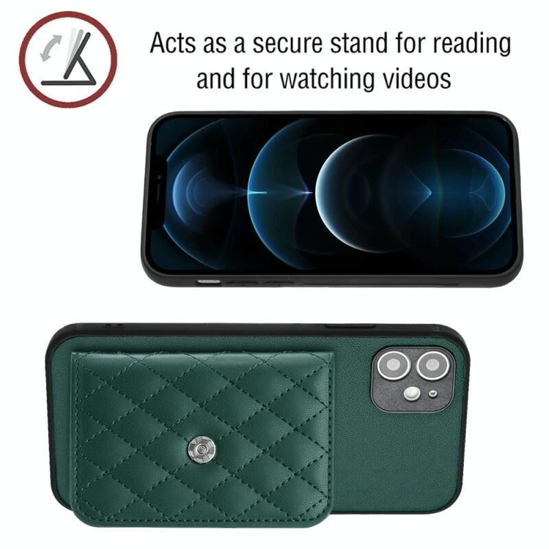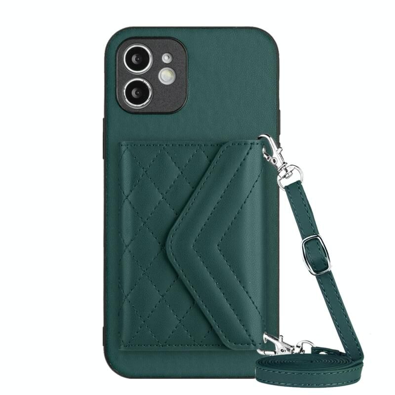 Θήκη κινητού τηλεφώνου RFID με υφή ρόμβου και μακρύ κορδόνι για iPhone 12 (Πράσινο)