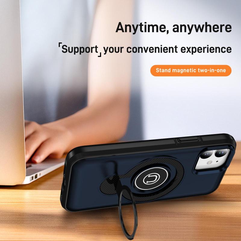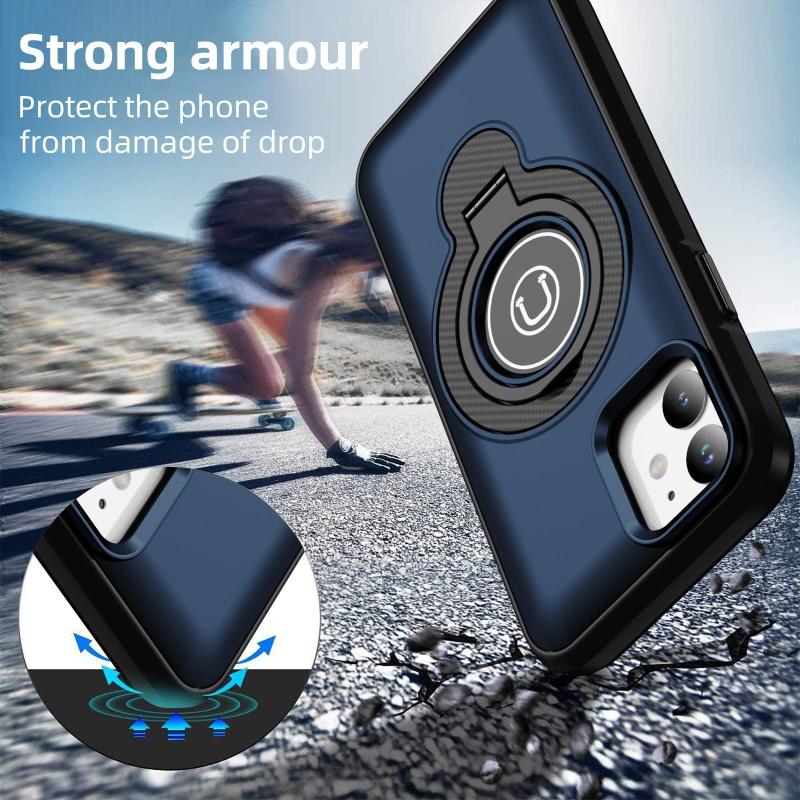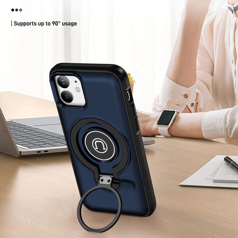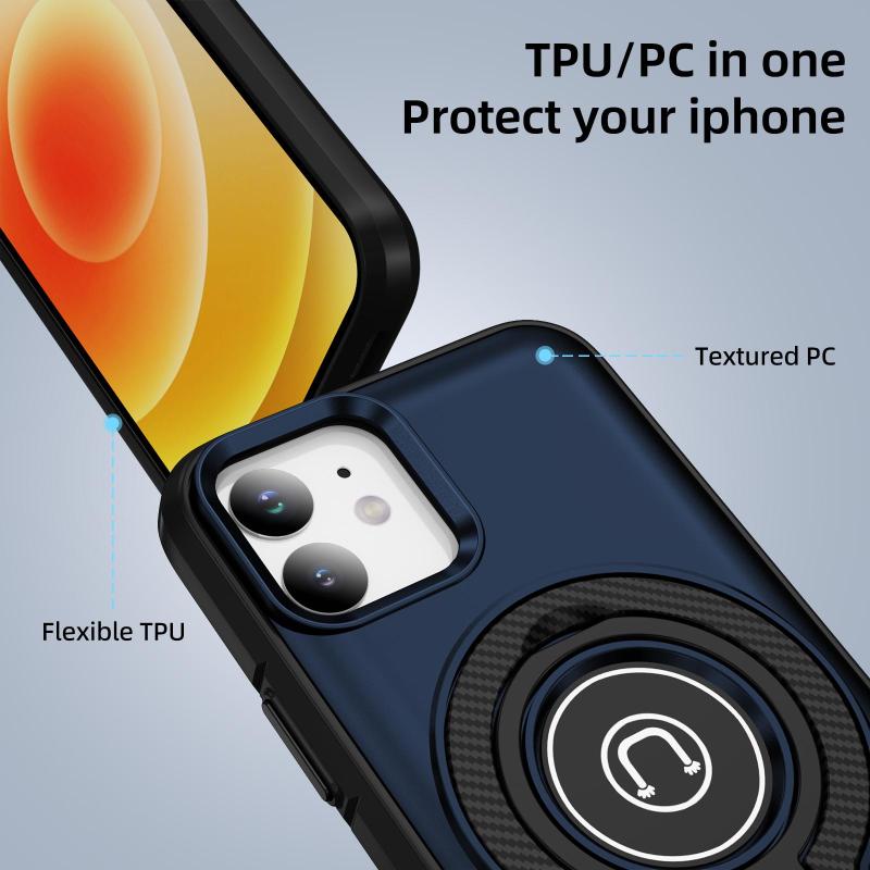For iPhone 12 Ring Holder Magnetic Phone Case(Blue)