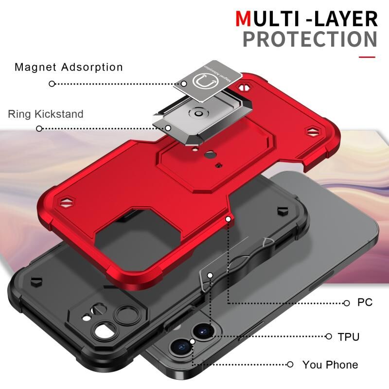 Θήκη τηλεφώνου με δακτύλιο για iPhone 12, αντιολισθητική, θωρακισμένη (Κόκκινη)