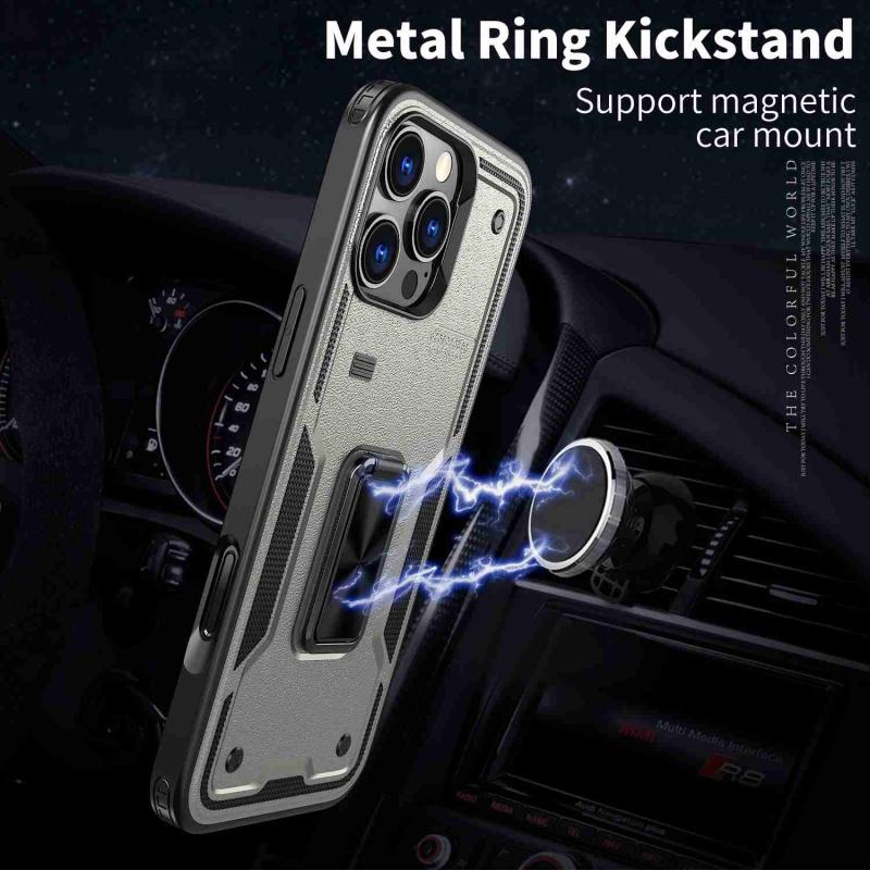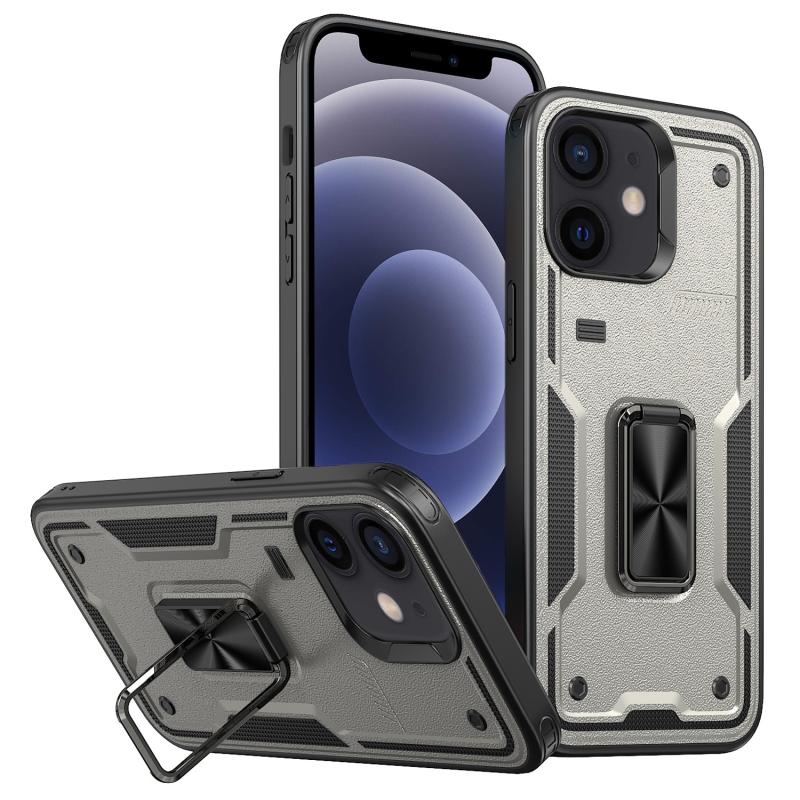 Θήκη iPhone 12 με Δαχτυλίδι Στήριξης - Υβριδική TPU/PC (Τιτάνιο Γκρι)