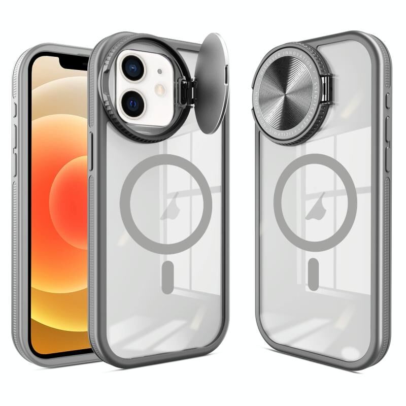 For iPhone 12 Round Camshield MagSafe TPU Hybrid PC Phone Case(Grey)