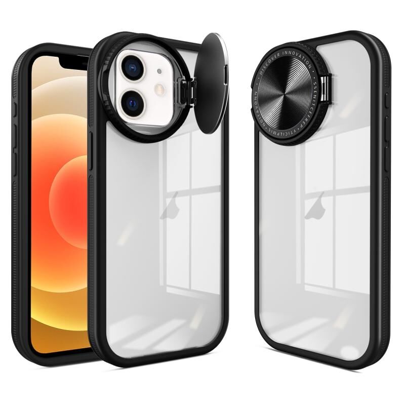For iPhone 12 Round Camshield TPU Hybrid PC Phone Case(Black)