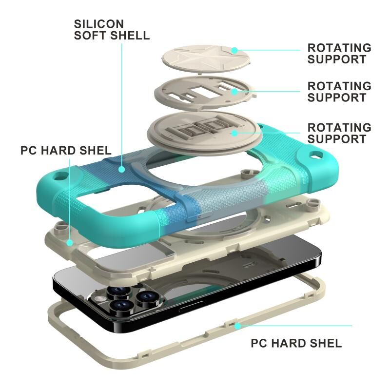 1. Υλικό: Κατασκευασμένο από σκληρά καλύμματα PC 2 στρώσεων και ένα μαλακό εξωτερικό κέλυφος σιλικόνης, παρέχει ολοκληρωμένη προστασία.