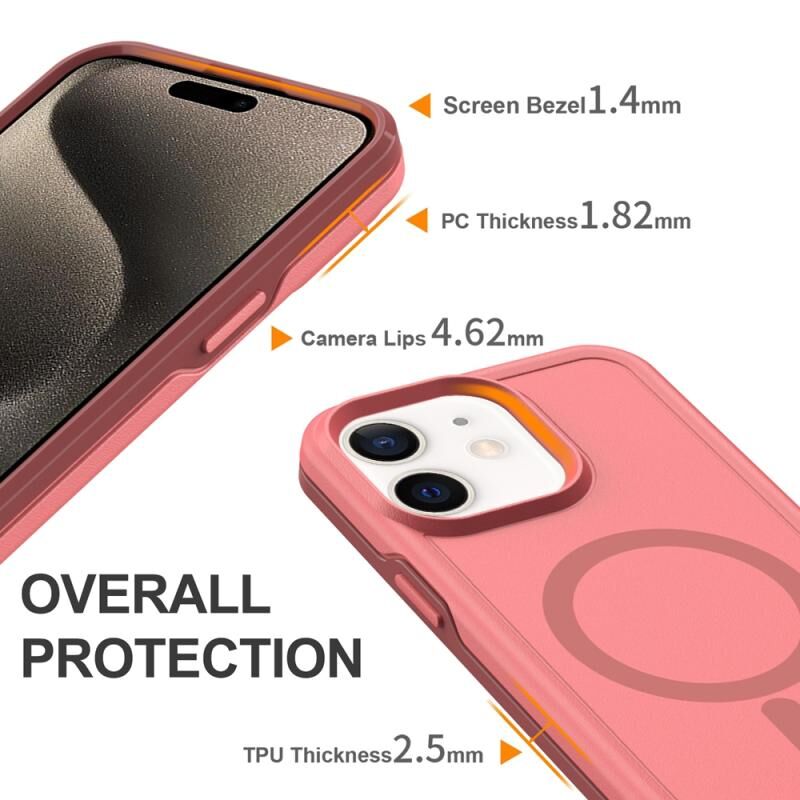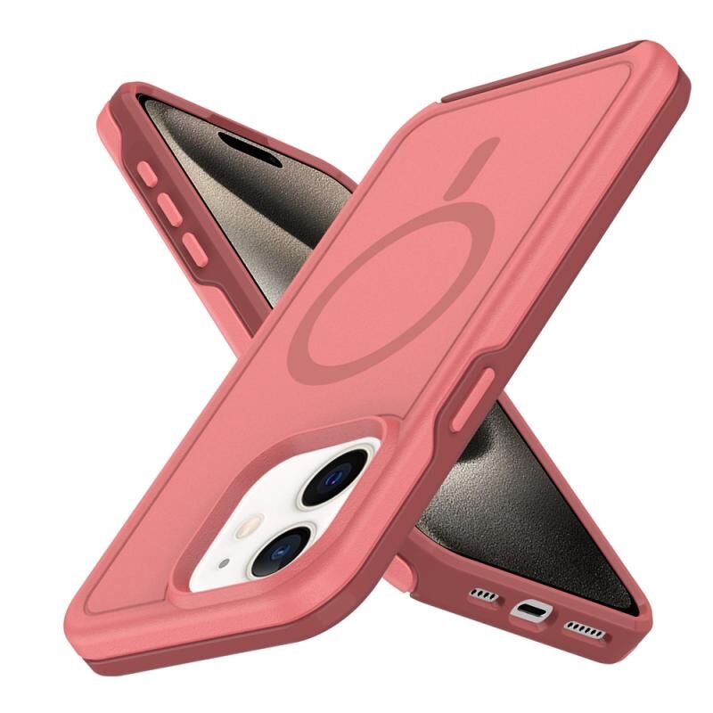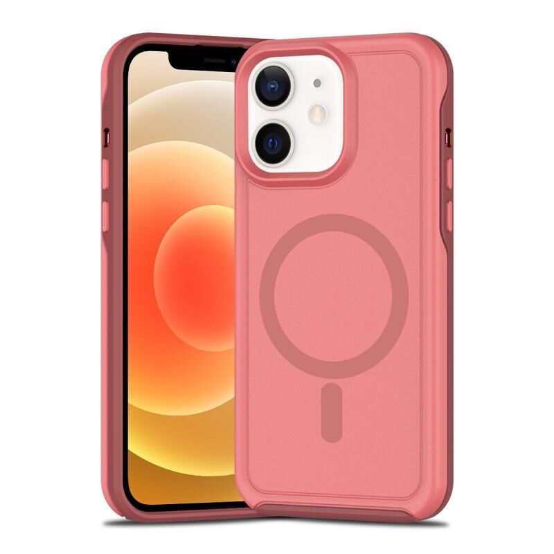 For iPhone 12 Shockproof MagSafe Armor PC Hybrid TPU Phone Case(Dark Pink+Maroon)