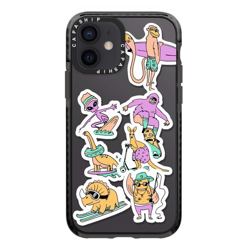 For iPhone 12 Simple Illustration Pattern Full Coverage Phone Case(Summer Surfing C)