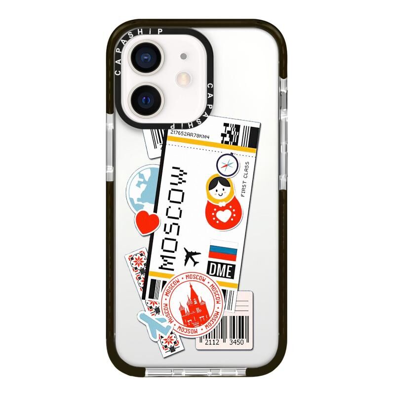 For iPhone 12 Simple Illustration Pattern Full Coverage Phone Case(Travel Ticket B)