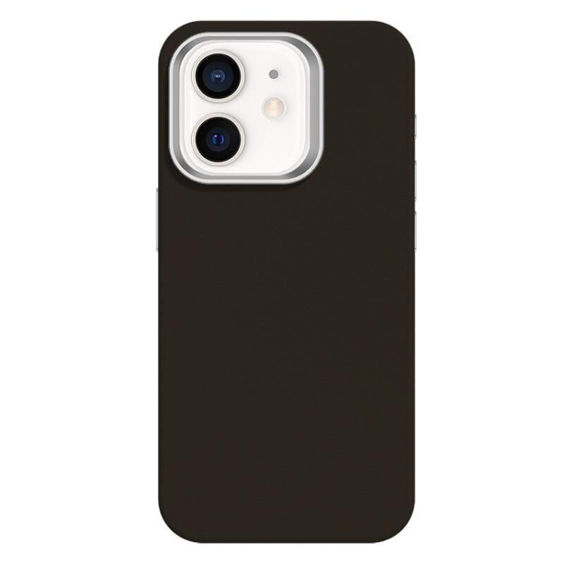 For iPhone 12 Skin Feel Fine Leather Texture Metal Lens Frame MagSafe Phone Case(Brown Gray)
