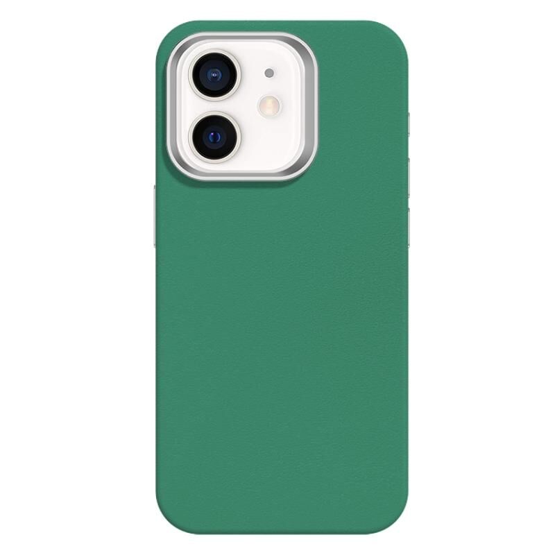 For iPhone 12 Skin Feel Fine Leather Texture Metal Lens Frame MagSafe Phone Case(Grass Green)