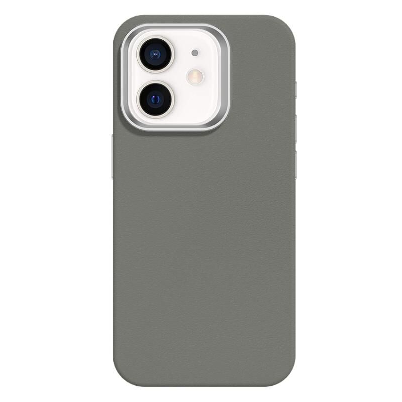 For iPhone 12 Skin Feel Fine Leather Texture Metal Lens Frame MagSafe Phone Case(Light Gray)