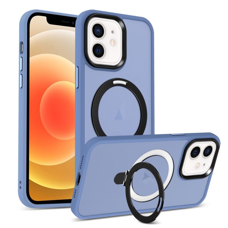 For iPhone 12 Skin-feel MagSafe Holder PC Hybrid TPU Phone Case(Blue)