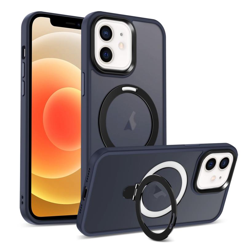 For iPhone 12 Skin-feel MagSafe Holder PC Hybrid TPU Phone Case(Dark Blue)