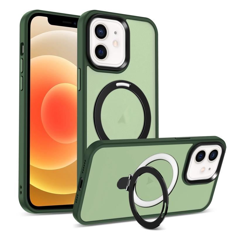 For iPhone 12 Skin-feel MagSafe Holder PC Hybrid TPU Phone Case(Green)