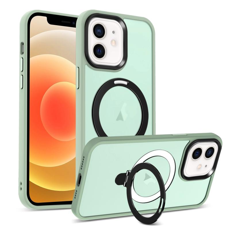 For iPhone 12 Skin-feel MagSafe Holder PC Hybrid TPU Phone Case(Matcha Green)