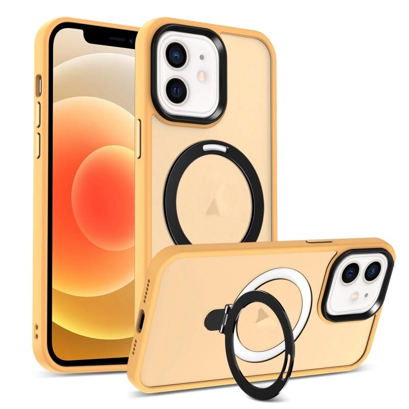 For iPhone 12 Skin-feel MagSafe Holder PC Hybrid TPU Phone Case(Orange)