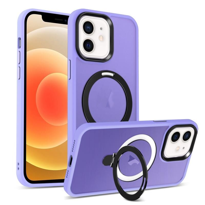 For iPhone 12 Skin-feel MagSafe Holder PC Hybrid TPU Phone Case(Purple)