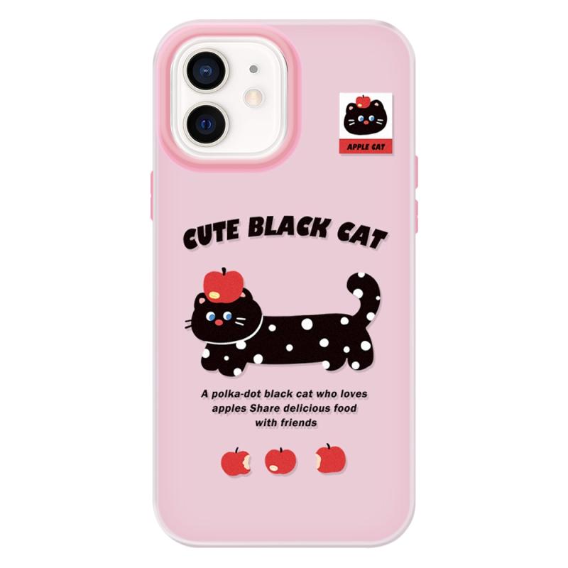 For iPhone 12 Skin Feeling Jelly TPU Hybrid PC Phone Case(Apple Black Cat Pink)