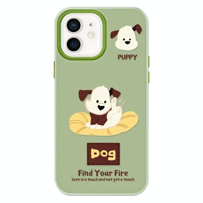 Θήκη τηλεφώνου για iPhone 12, υβριδική από TPU και PC, με αίσθηση ζελέ (Enthusiastic Puppy Green)