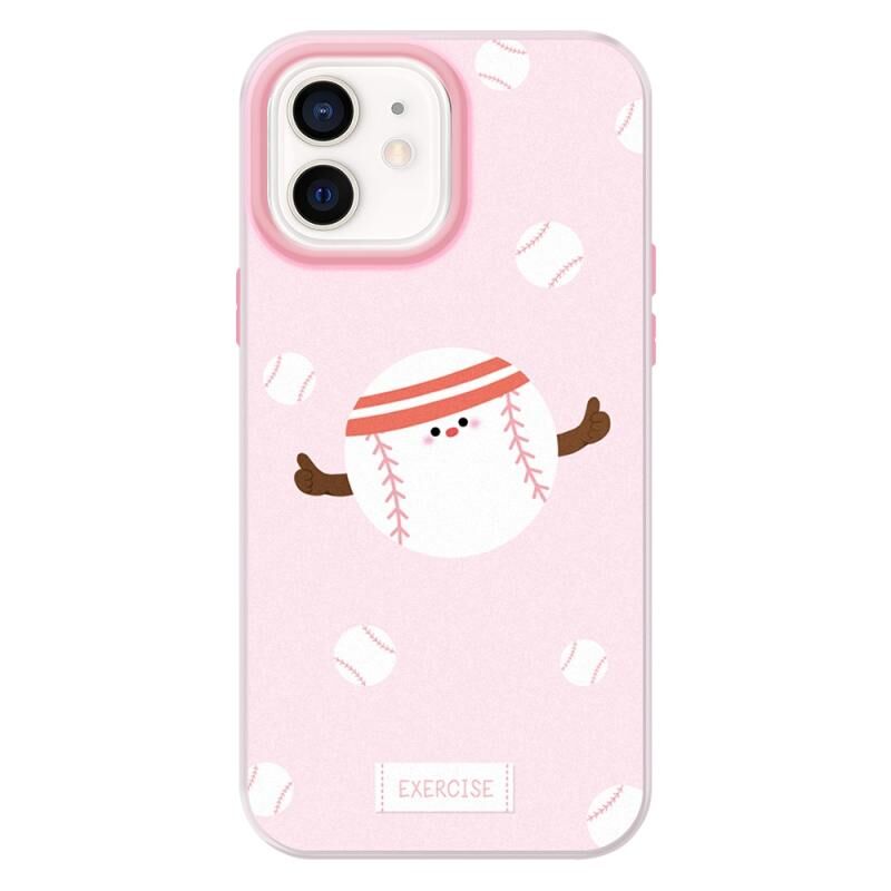 Θήκη τηλεφώνου για iPhone 12, υβριδική από TPU και PC, με αίσθηση ζελέ (Sports Baseball Pink)