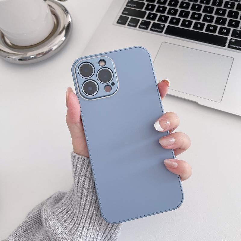 Θήκη τηλεφώνου από ματ γυαλί tempered για iPhone 12 (Γαλάζια Λίμνη)