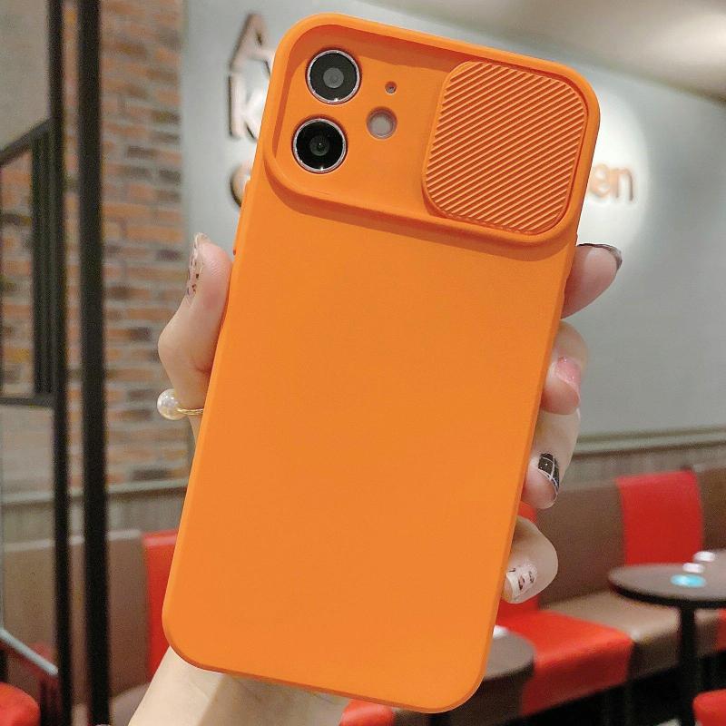 For iPhone 12 Slid Camera Shield Liquid Silicone TPU Phone Case(Orange)
