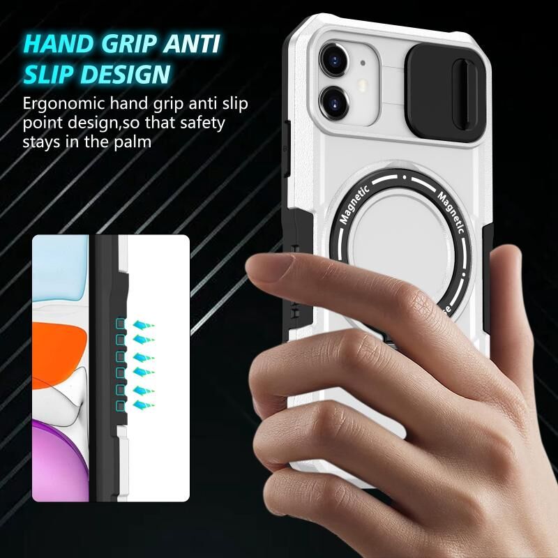 For iPhone 12 Sliding Camshield MagSafe Holder TPU Hybrid PC Phone Case(Black White)
