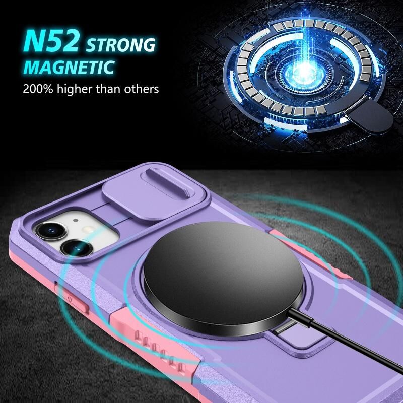 For iPhone 12 Sliding Camshield MagSafe Holder TPU Hybrid PC Phone Case(Pink Purple)