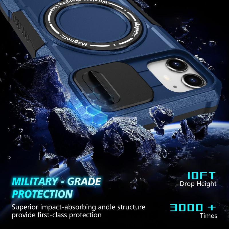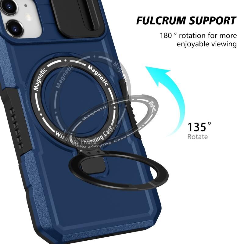 For iPhone 12 Sliding Camshield MagSafe Holder TPU Hybrid PC Phone Case(Royal Blue)