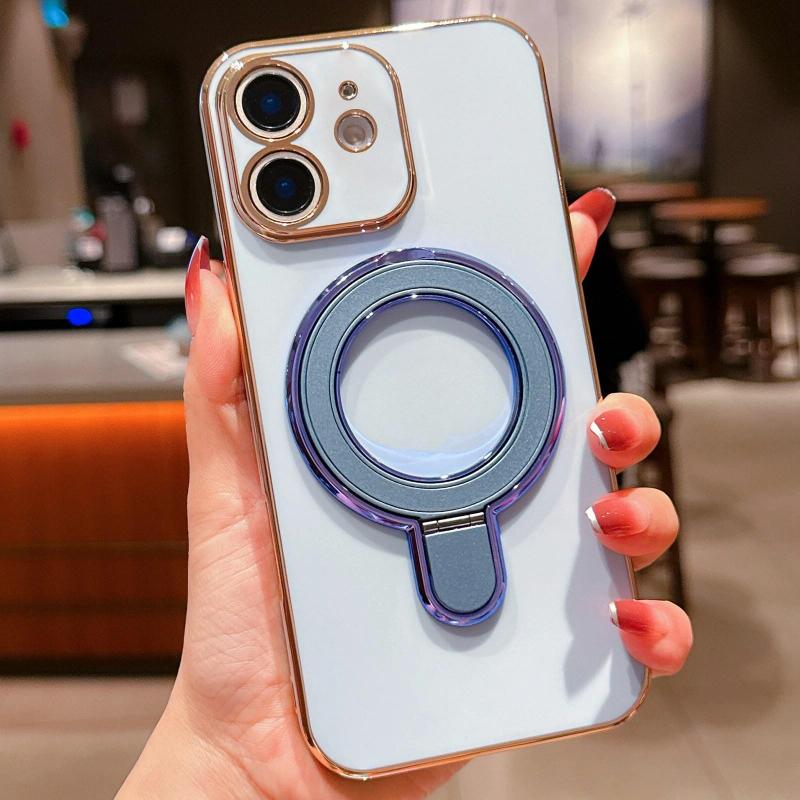 For iPhone 12 Solid Color Electroplated Metal Holder Phone Case(Sierra Blue)