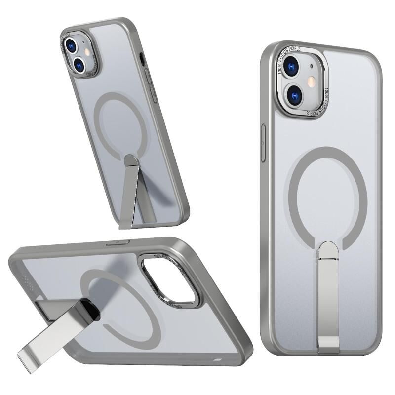 For iPhone 12 Star Shine Series TPU + PC MagSafe Phone Case with Fold Holder(Grey)