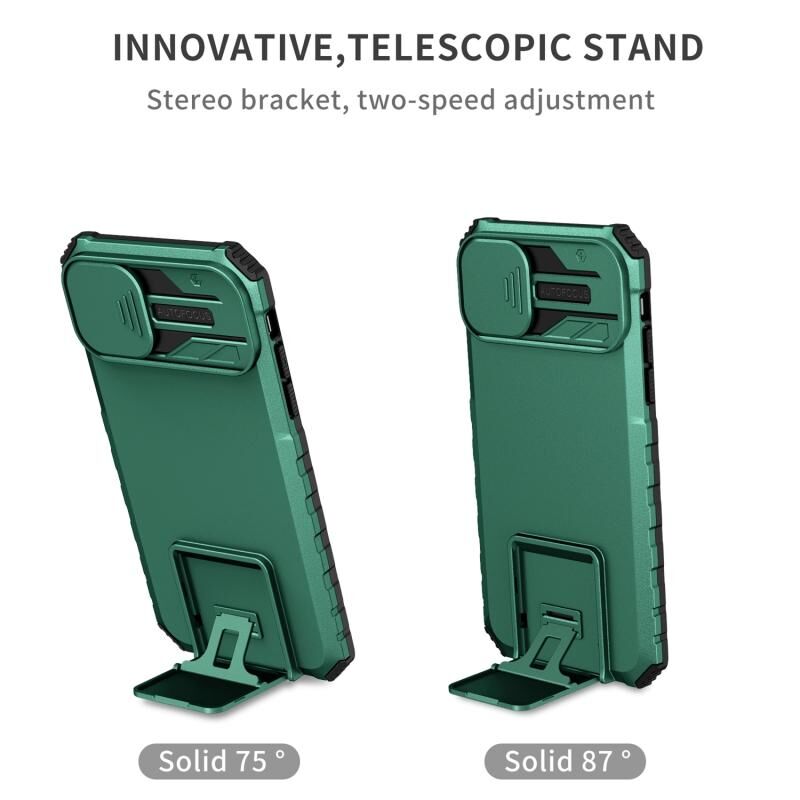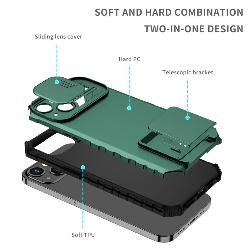 Θήκη τηλεφώνου για iPhone 12 με στερεοσκοπική βάση και συρόμενο προστατευτικό κάμερας (Ροζ)