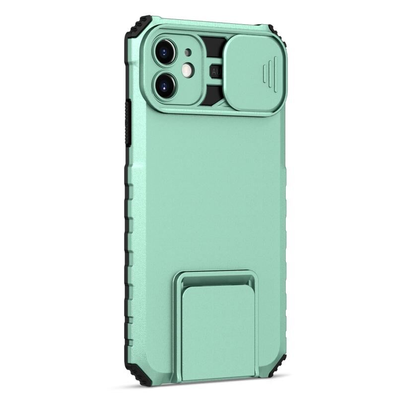 Θήκη τηλεφώνου για iPhone 12 με στερεοσκοπική βάση και συρόμενο προστατευτικό κάμερας (Ροζ)