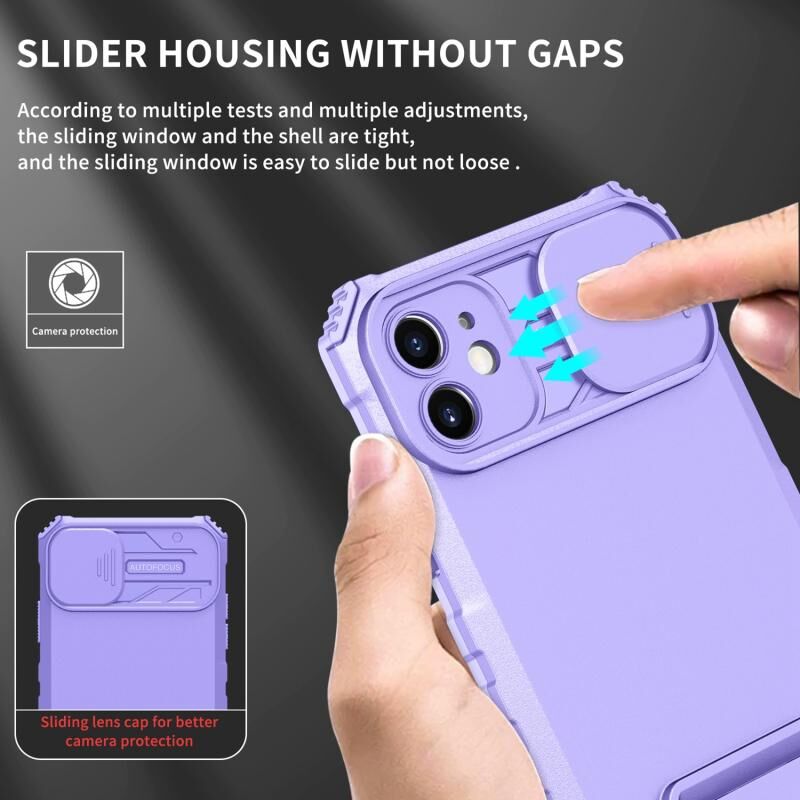 Θήκη τηλεφώνου για iPhone 12 με στερεοσκοπική βάση και συρόμενο προστατευτικό κάμερας (Ροζ)