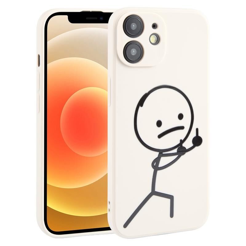 For iPhone 12 Stickman Pattern Liquid Silicone Phone Case(White)