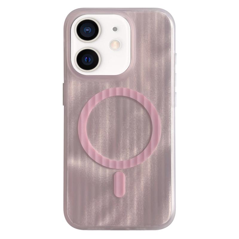 For iPhone 12 Striped Skin Feel Magnetic Magsafe Phone Case(Pink)