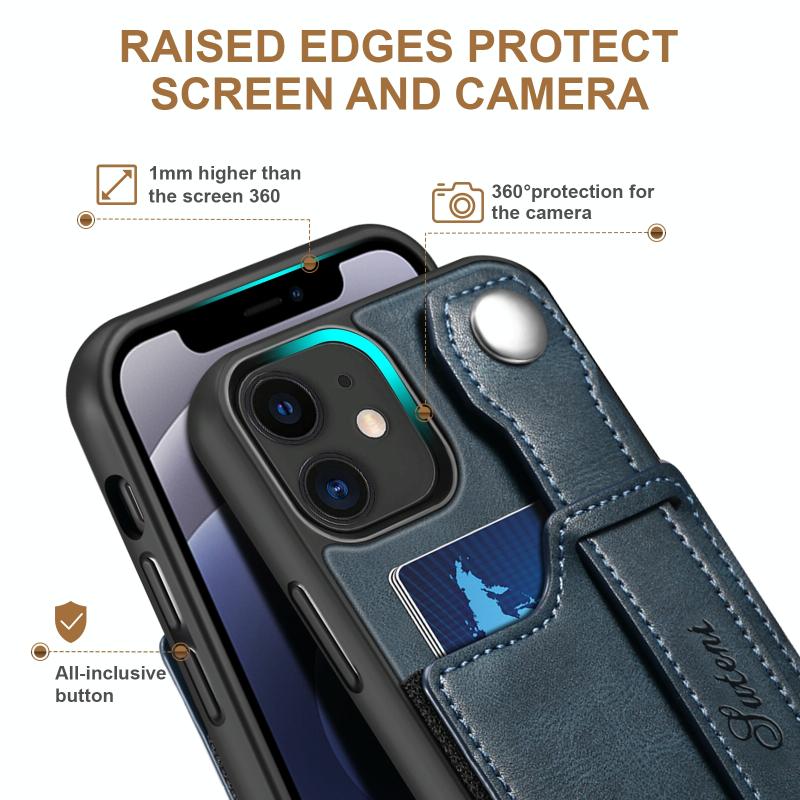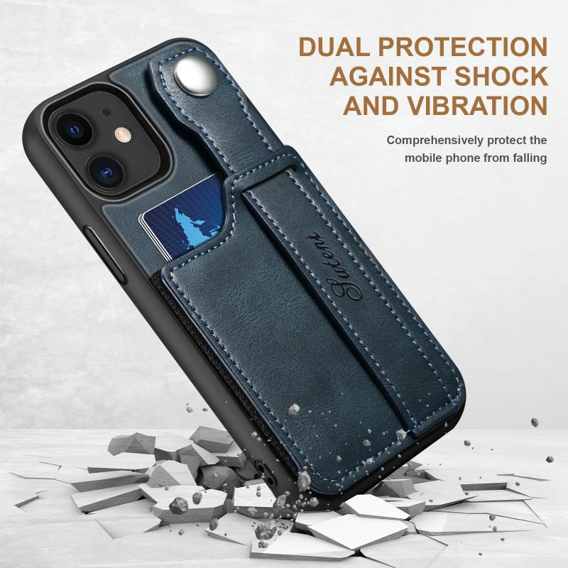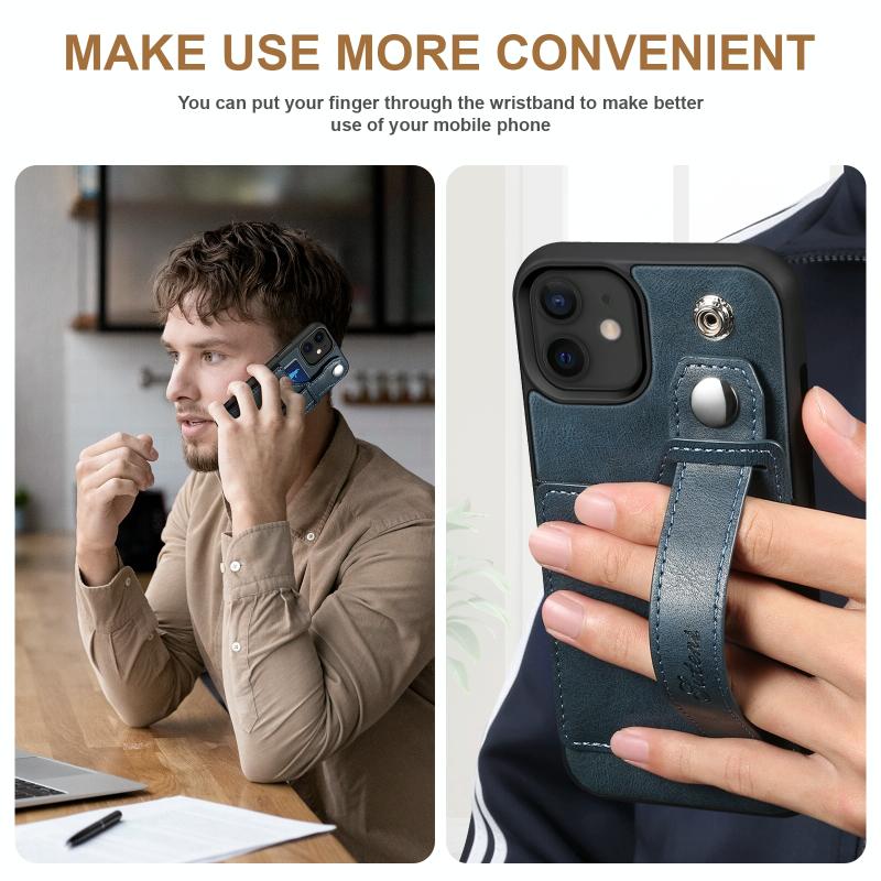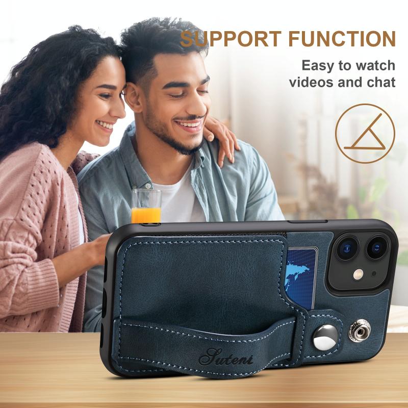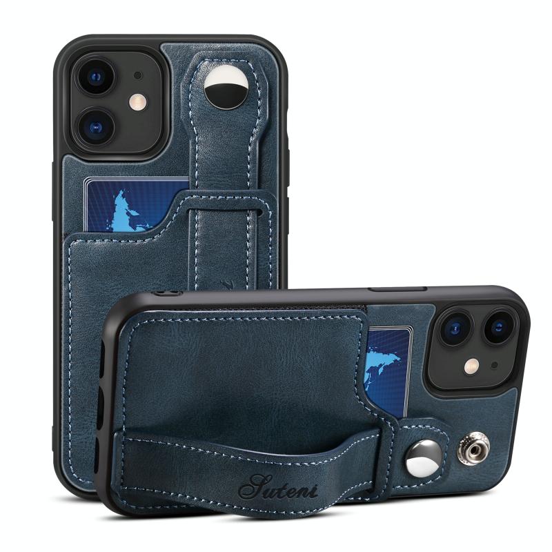 For iPhone 12 Suteni 215 Wrist Strap PU Phone Case(Blue) (Suteni)